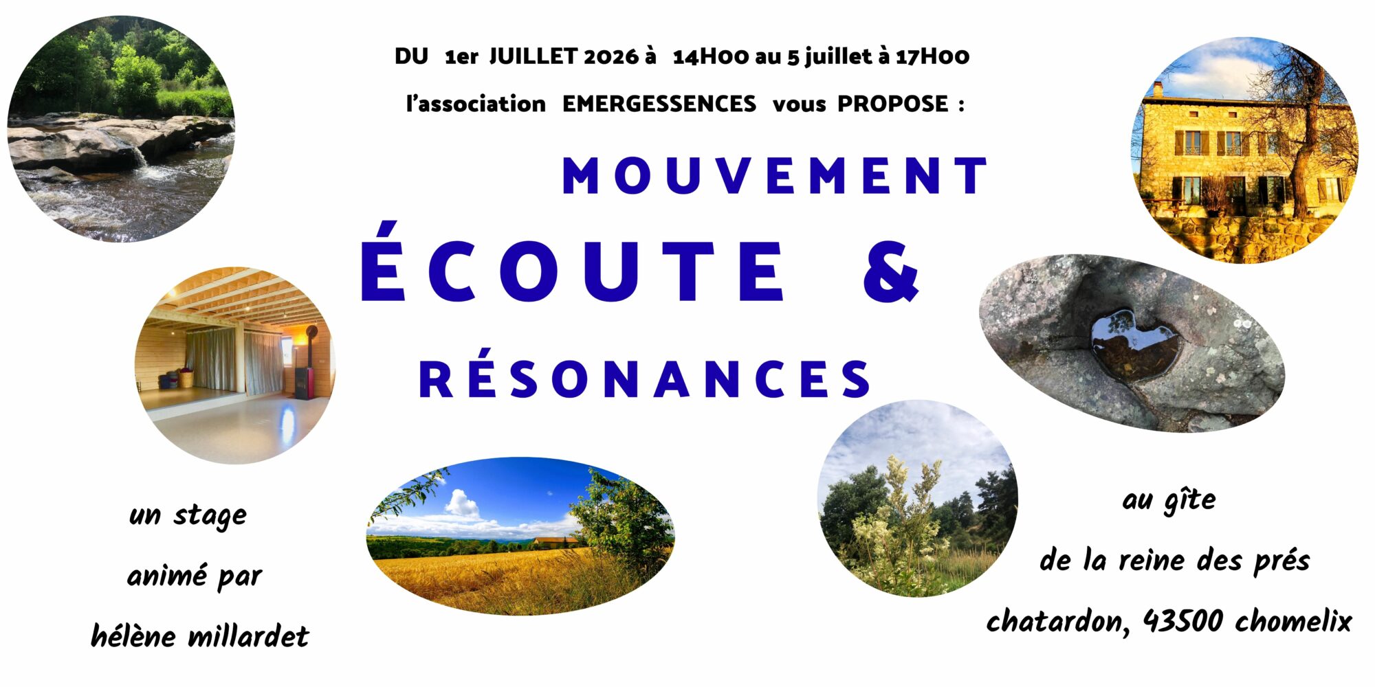 Mouvement Écoute & Résonancespar Hélène Millardetdans Blogsur Publié le 10/03/202621/04/2026 Un stage Feldenkrais du 1er au 5 juillet 2026 au Gîte de la Reine des Prés, Chomelix. Toutes informations pratiques ici